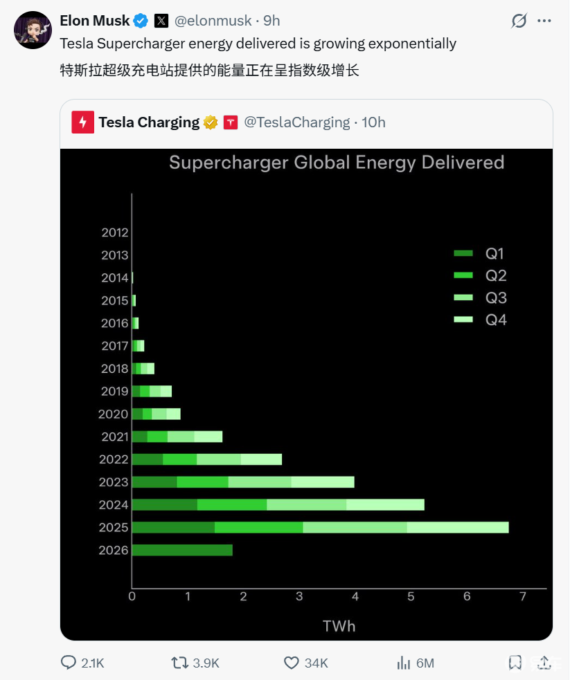 充电与储能业务合手续发力,完善全产业链布局。2026年第一季度,特斯拉超等充电站群众输出电力1.8太瓦时,同比增长22%,既得益于超充汇注与车主数目增长,也因为非特斯拉品牌车主的使用需求普及。为止2026年3月,特斯拉群众领有超75000根超等充电桩、8000多座超等充电站,充电桩及时可用率达99.95%,是群众遮蔽最广的直流充电汇注品牌之一。