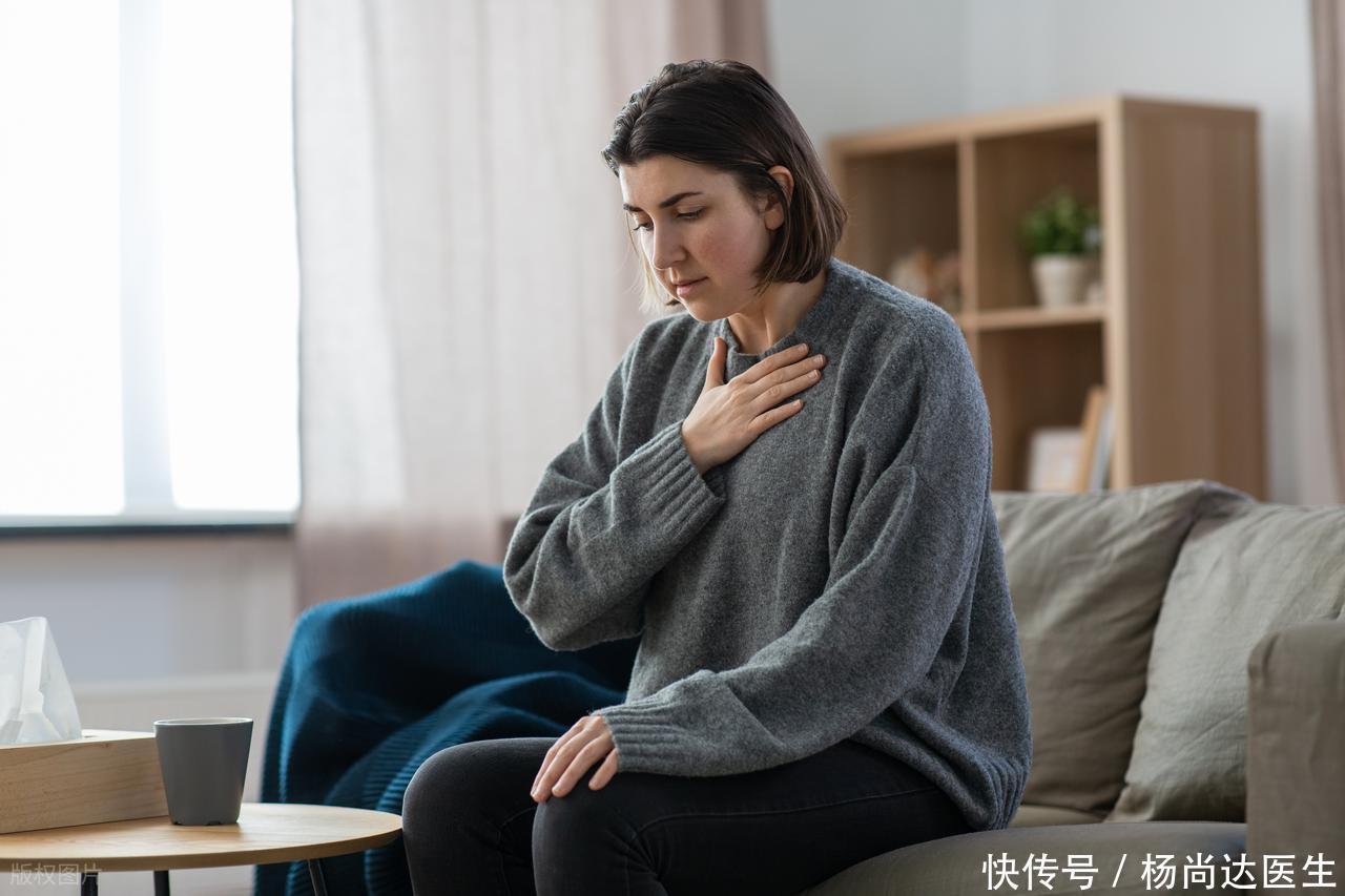 第一个症状:无故胸闷憋气,胸口有昭着压迫感。